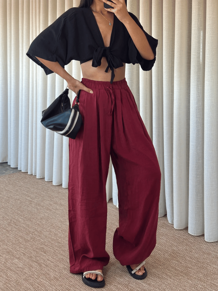 Modal Bağcıklı Palazzo Pantolon - Bordo (MD3698_Bordo)