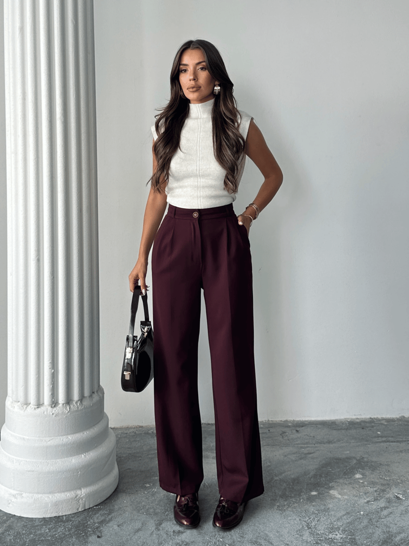 My Palazzo Kumaş Pantolon - Mürdüm ( MYD23_Mürdüm)