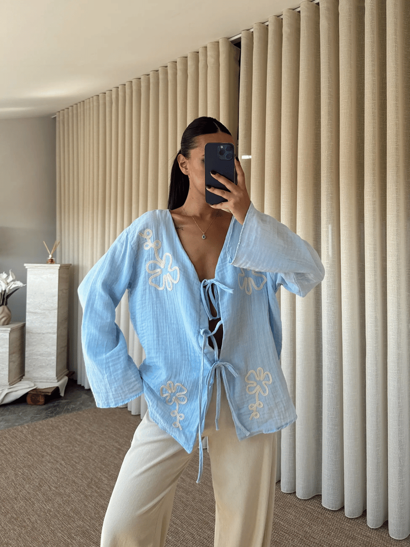 Nakışlı Kimono Takım - Mavi (MYD2587_Mavi)