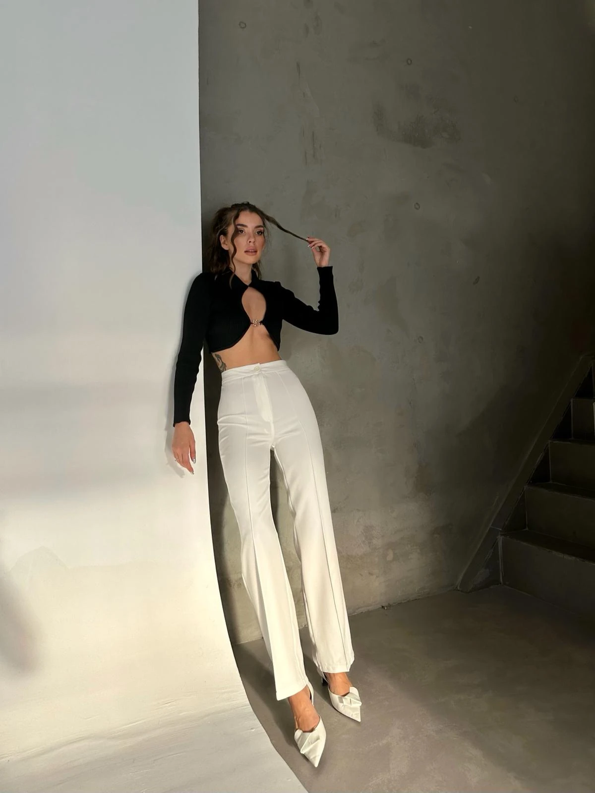 Ön Dikiş Boru Paça Kumaş Pantolon - Beyaz (MYD4001_Beyaz)