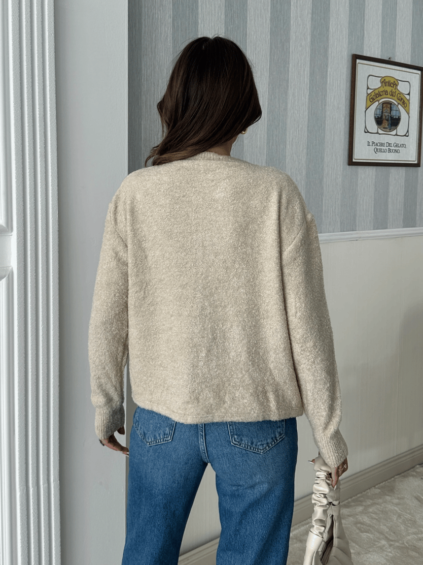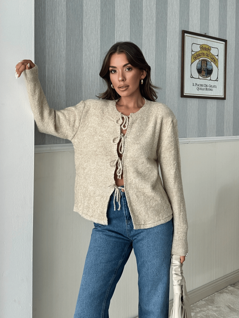 Önden Bağlamalı Triko Hırka - Taş (MD4070_Taş)