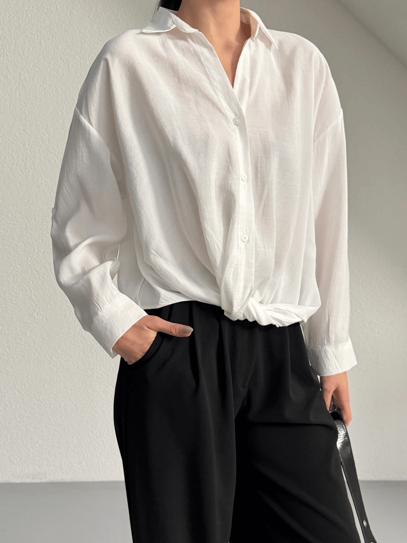 Önü Burgulu Modal Gömlek - Ekru (MD4335_Ekru)