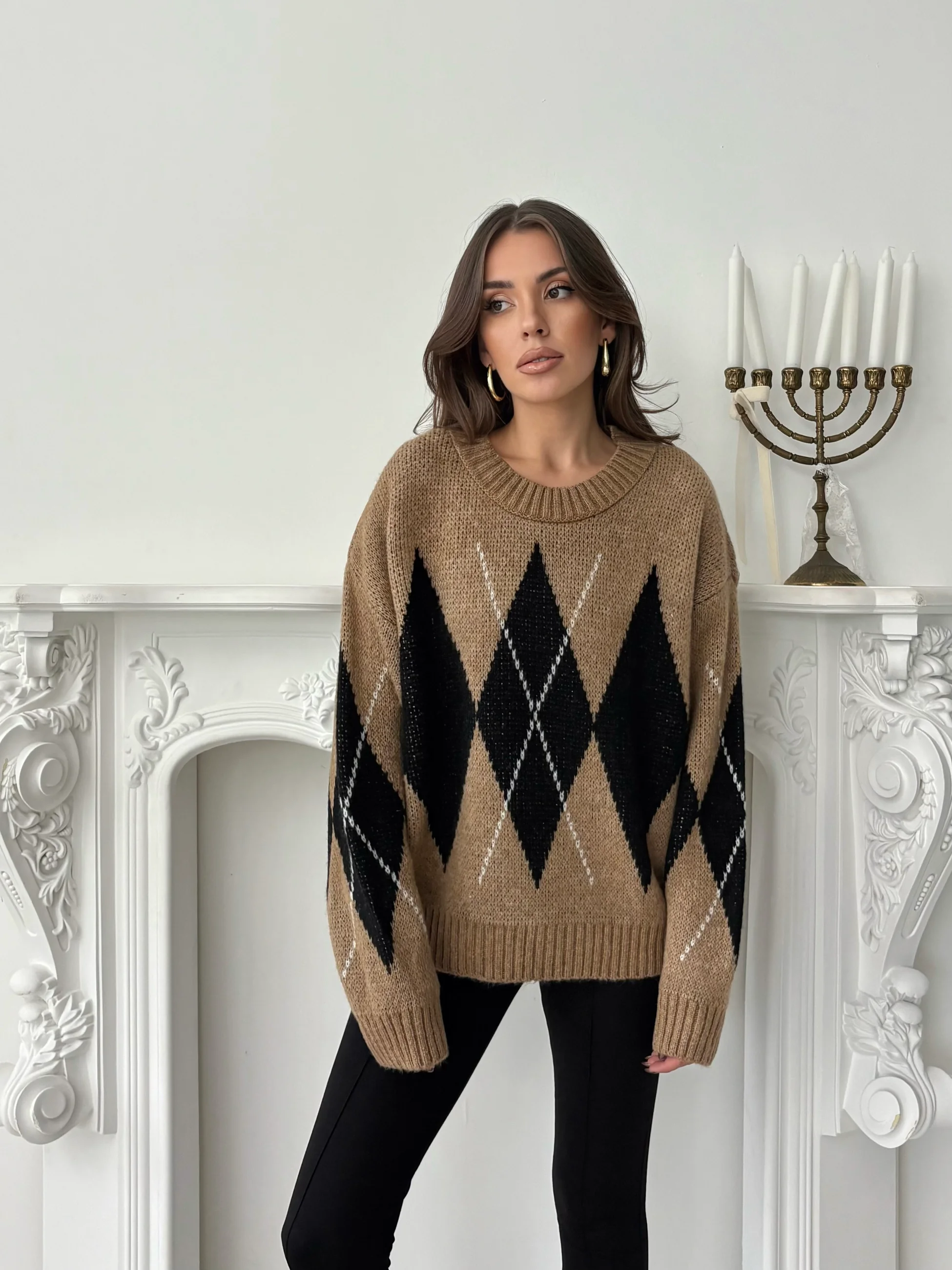 Oversize Baklava Desenli Kazak - Taba (MYD8110_Taba)