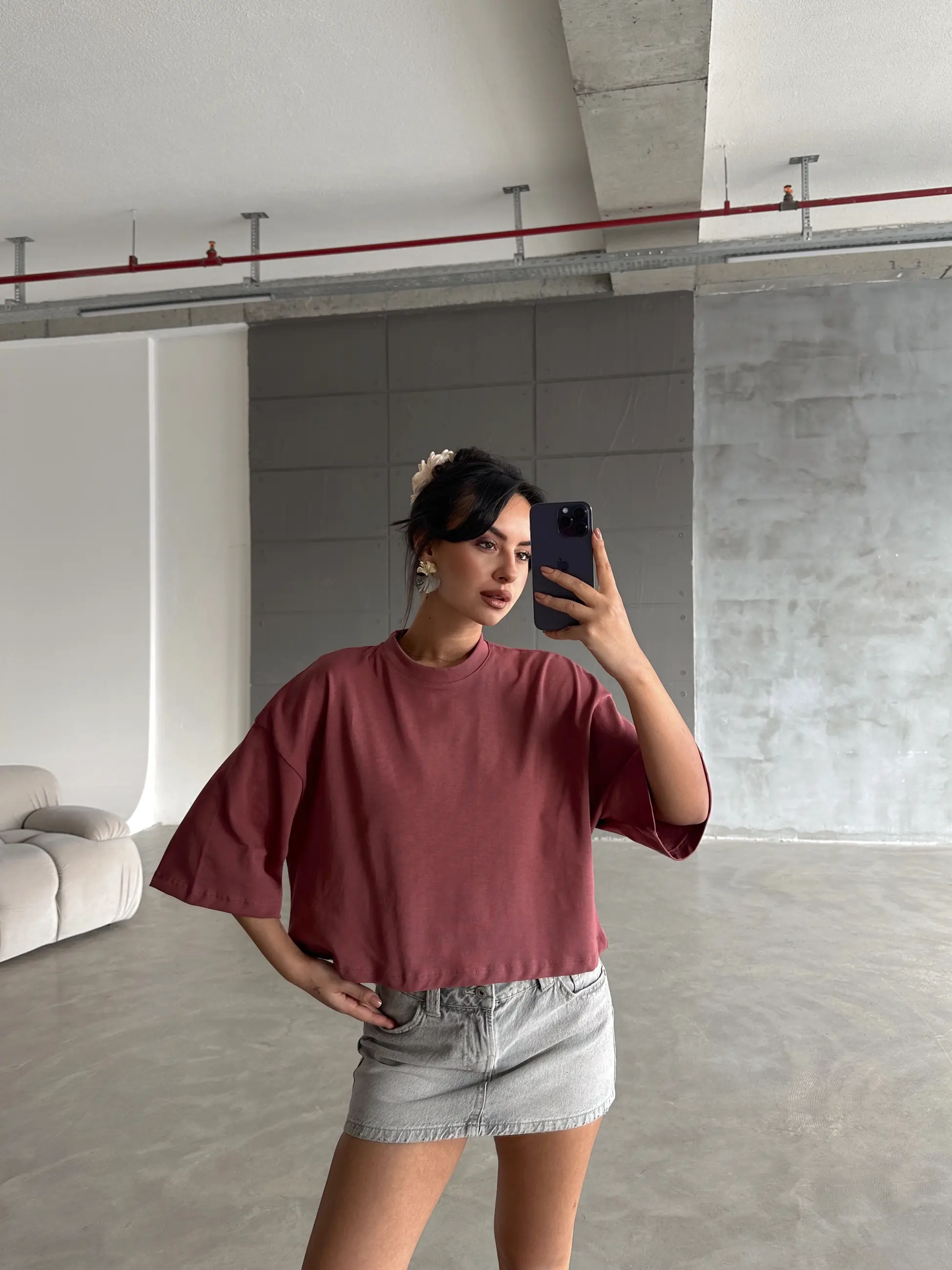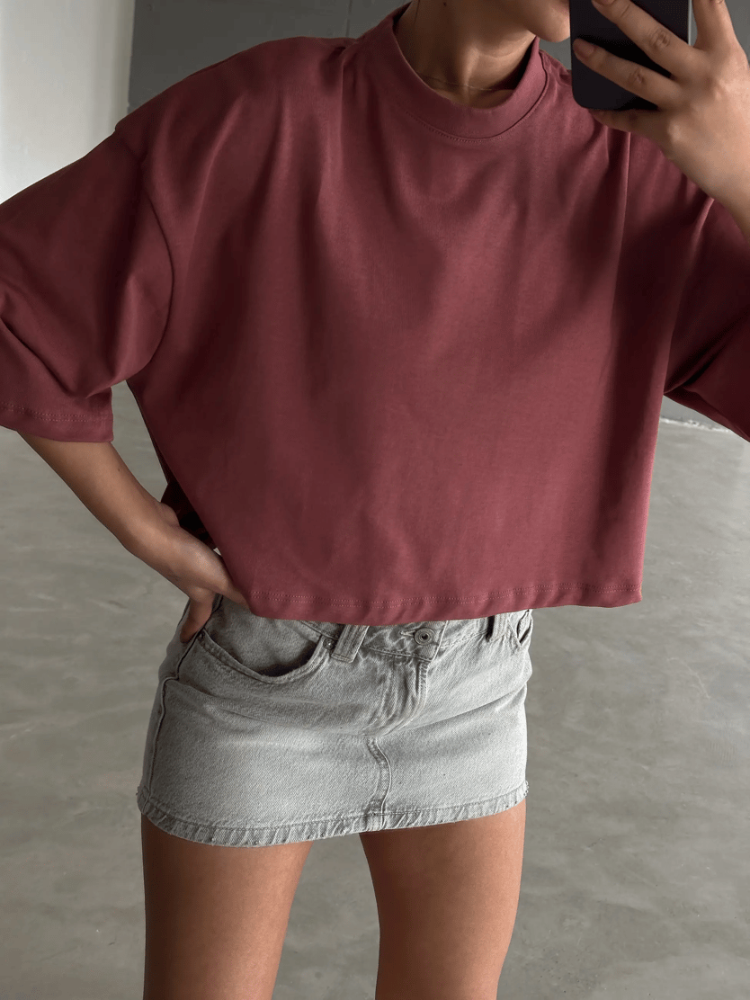 Oversize Basic Crop - Siyah Oversize Basic Crop - Ekru Oversize Basic Crop - Bordo