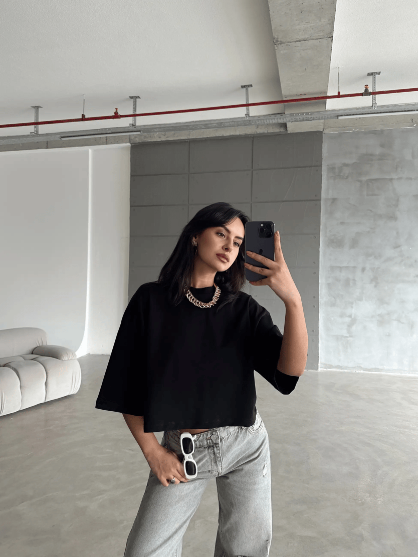 Oversize Basic Crop - Siyah (MYD4608_Siyah)
