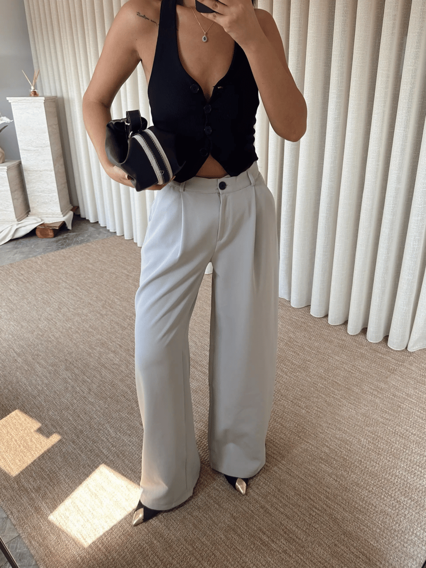 Paçası Düğmeli Palazzo - Gri (MYD7446_Gri)