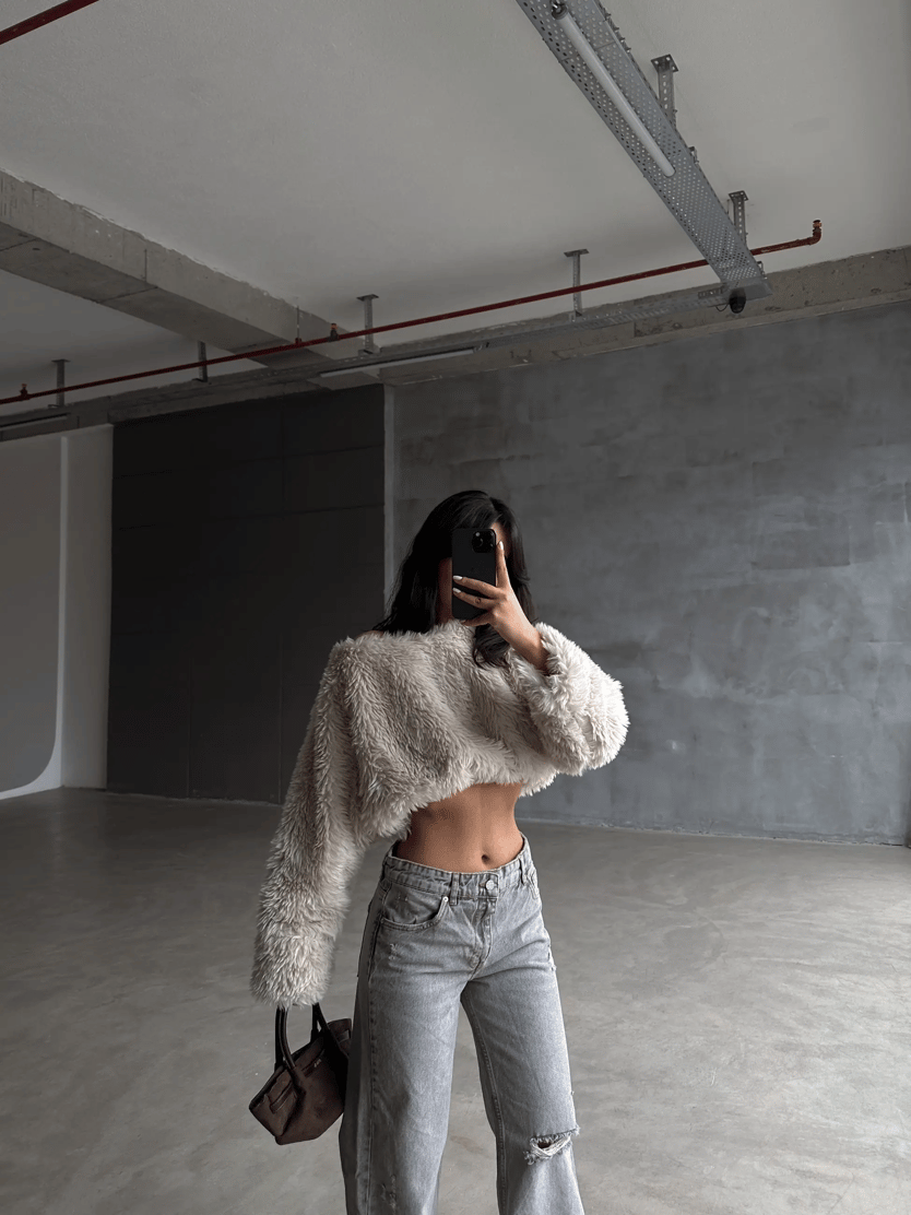 Peluş Crop Kazak Taş - Taş (MYD7439.KZ.01_Taş)