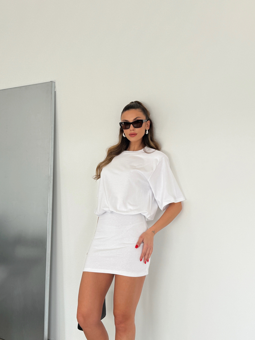 Pens Dikişli Vatkalı Elbise - Beyaz (MD4425_Beyaz)