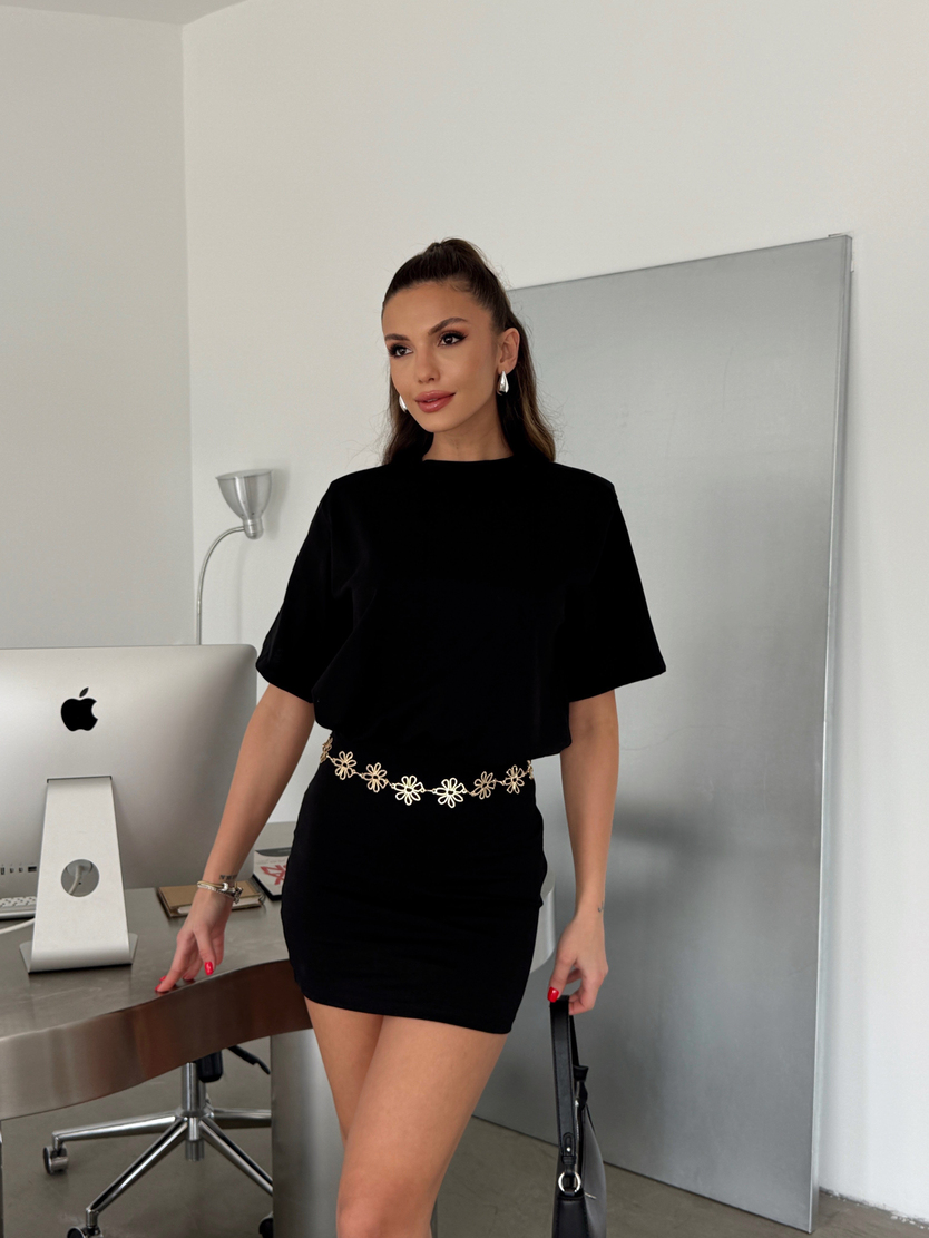 Pens Dikişli Vatkalı Elbise - Siyah (MD4425_Siyah)