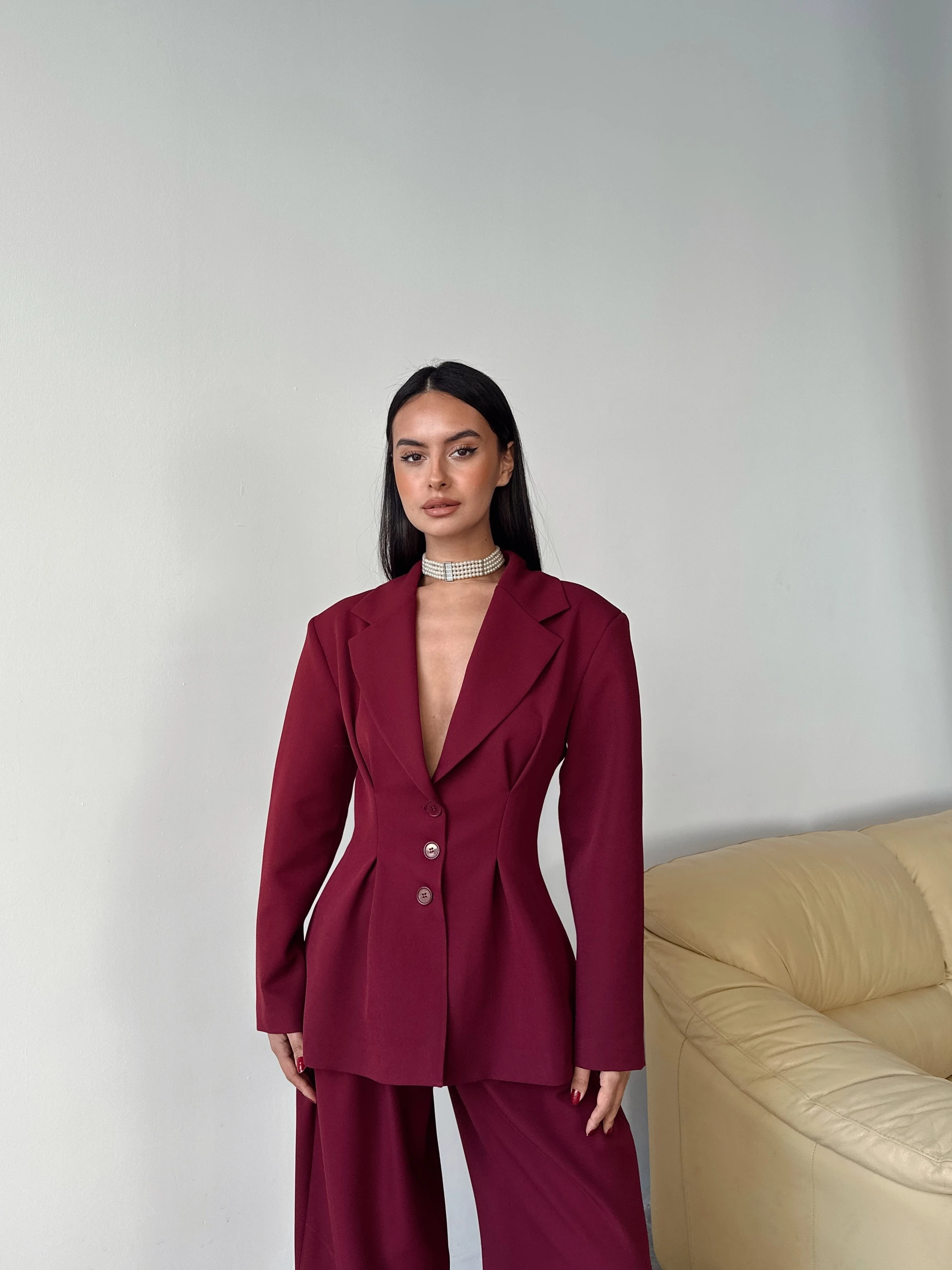 Pile Detay Oturtmalı Blazer Ceket - Bordo (MYD7479_Bordo)