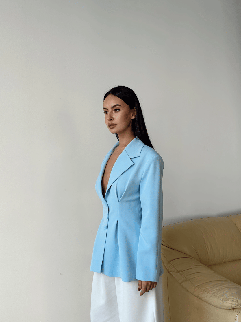 Pile Detay Oturtmalı Blazer Ceket - Mavi (MYD7479_Mavi)