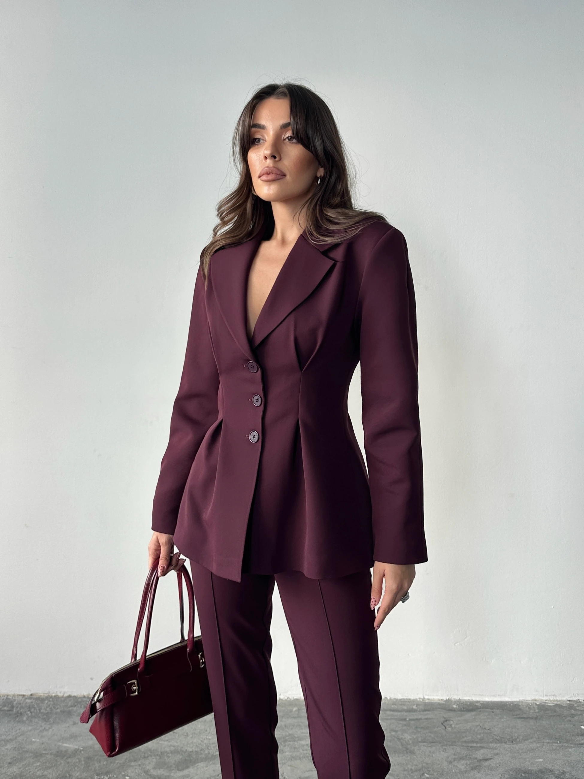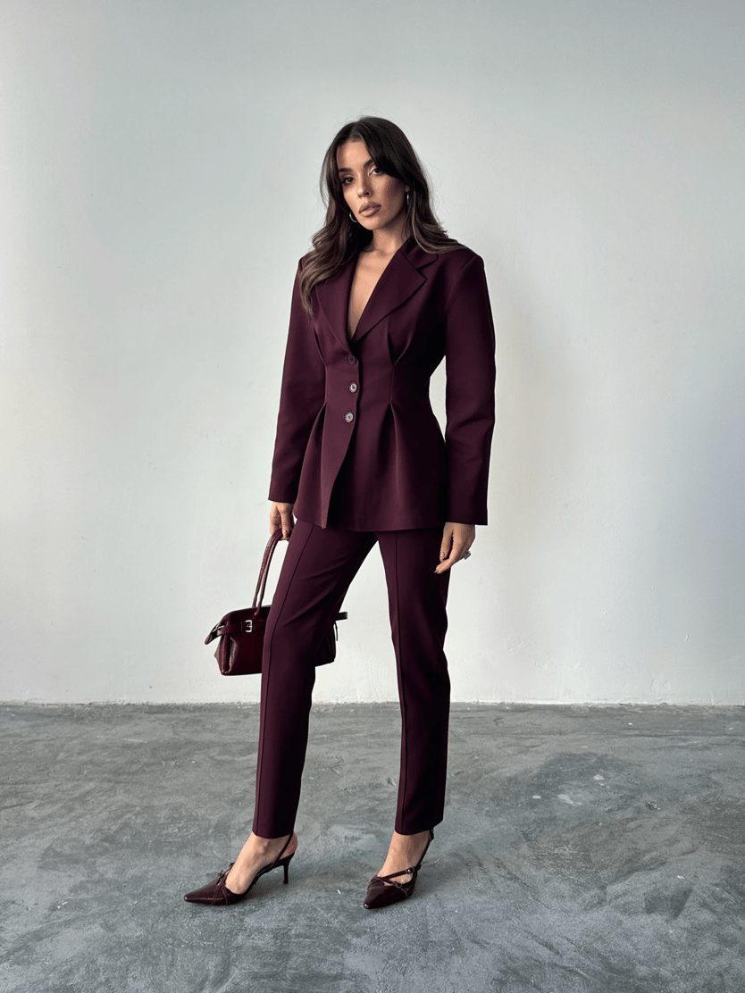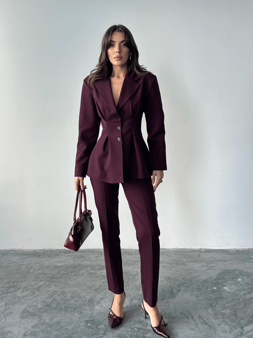 Pile Detay Oturtmalı Blazer Ceket - Mürdüm (MYD7479_Mürdüm)