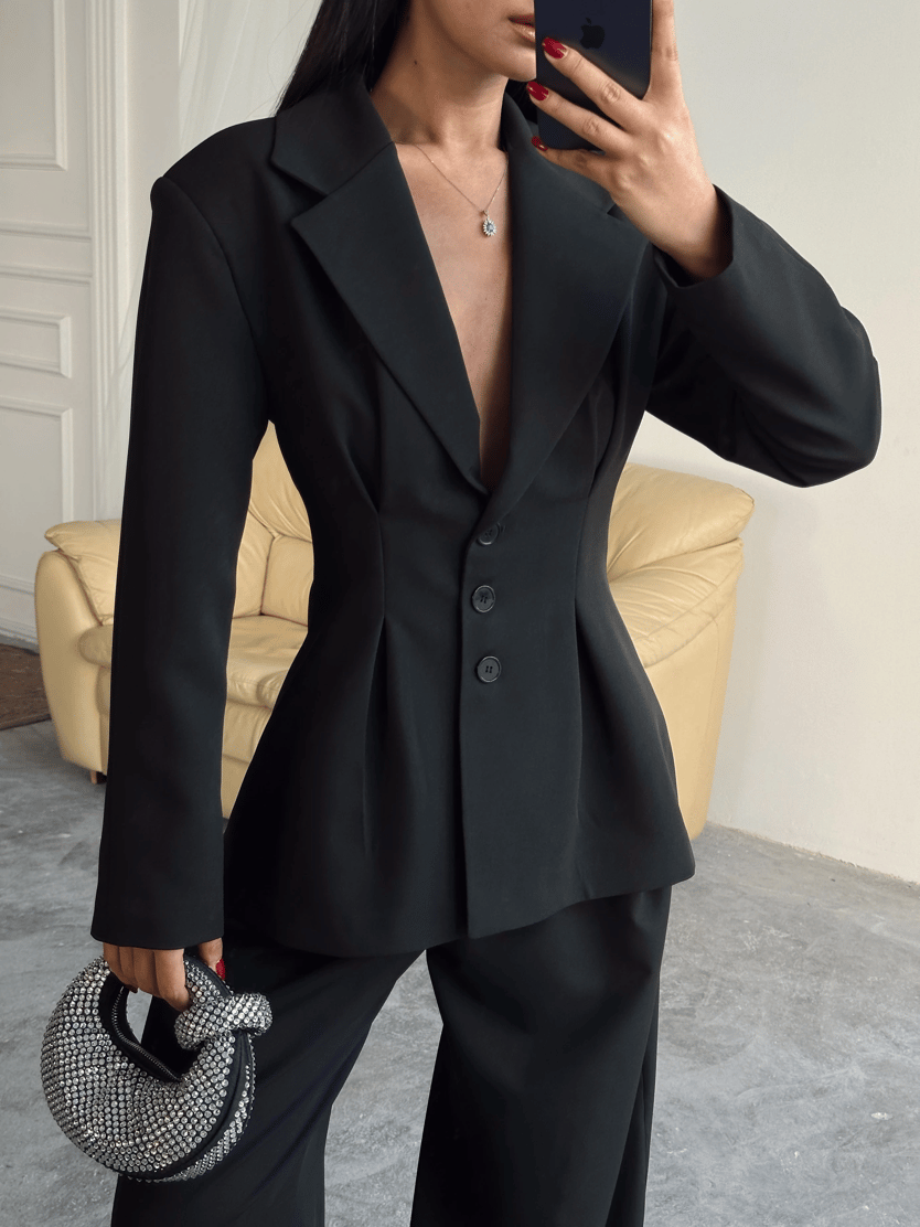 Pile Detay Oturtmalı Blazer Ceket - Siyah (MYD7479_Siyah)