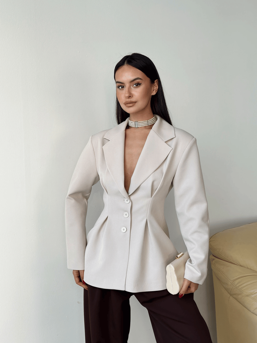 Pile Detay Oturtmalı Blazer Ceket - Taş (MYD7479_Taş)