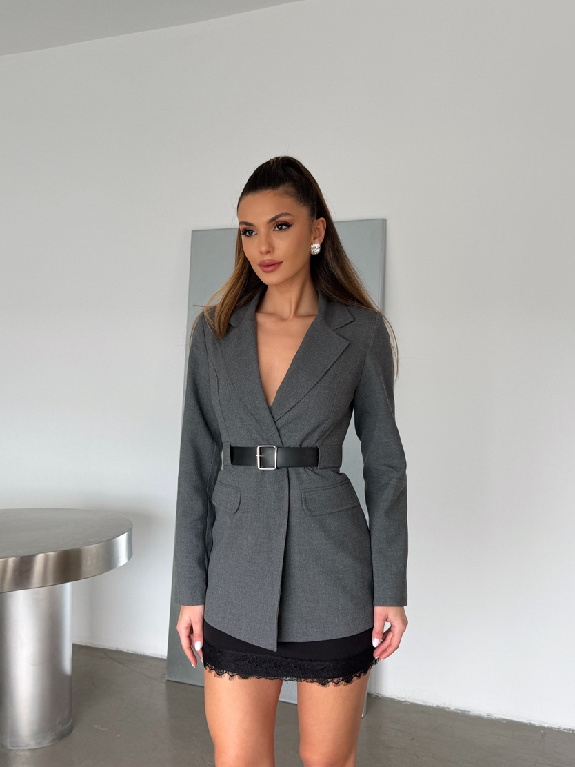 Poliviskon Kemerli Blazer Ceket - Antrasit (MD4481_Antrasit)