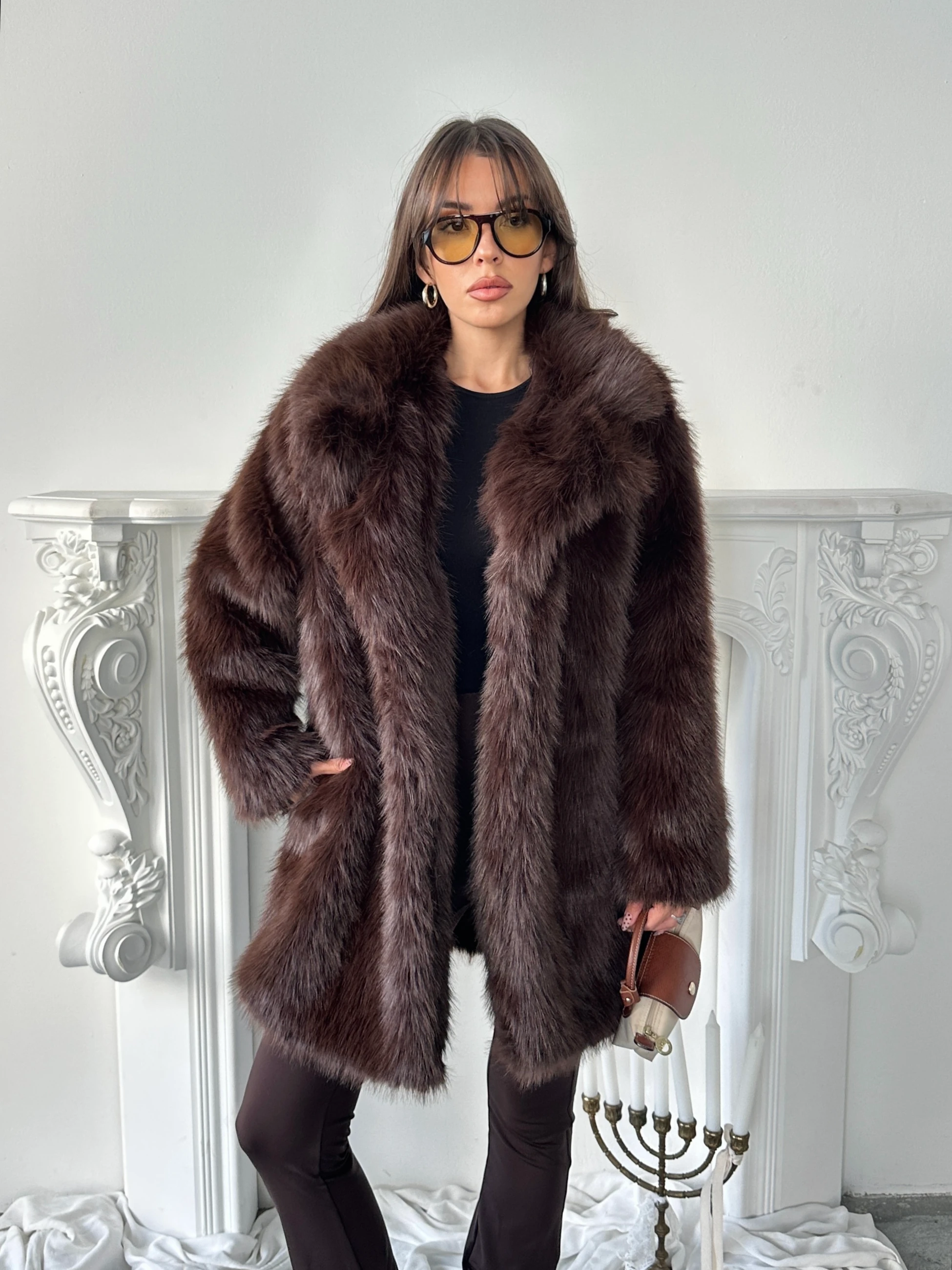 Premium Yakalı Uzun Kürk - Acı kahve (MD4140_Acı kahve)