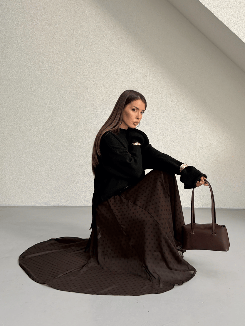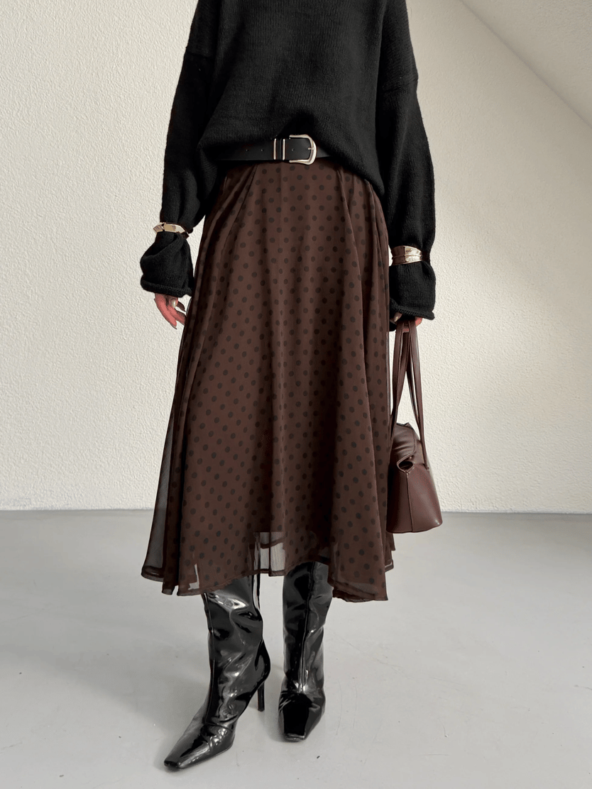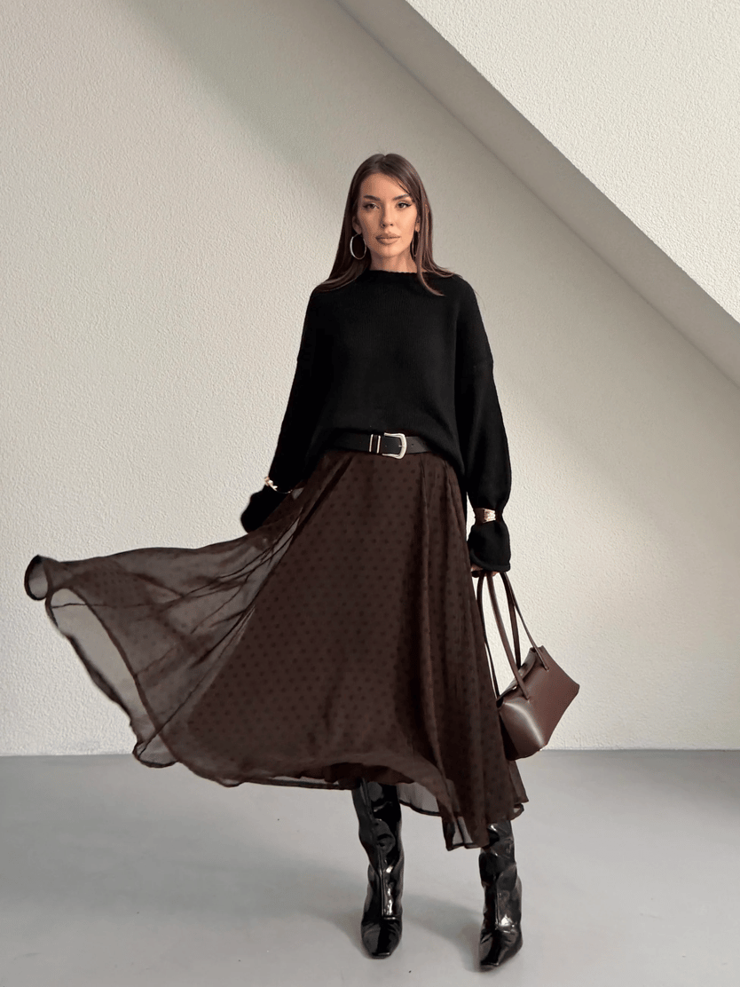 Puantiye Desenli Tül Etek - Kahve (MD4341_Kahve)