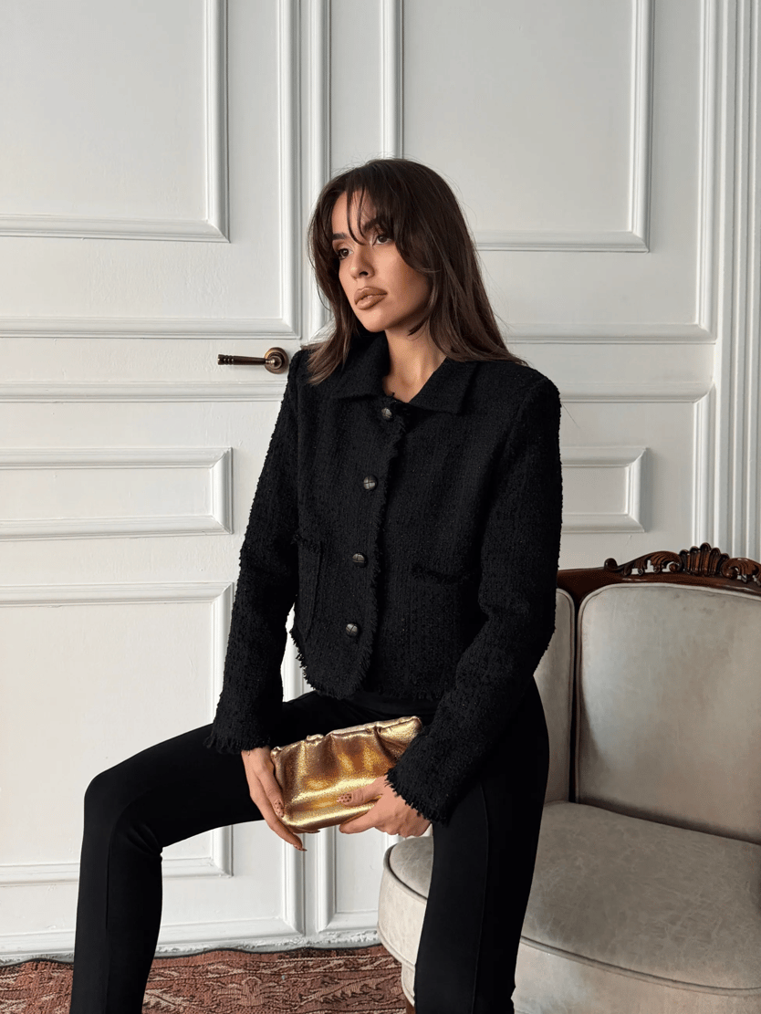 Püskül Detay Tüvit Ceket - Siyah (MYD7509_Siyah)