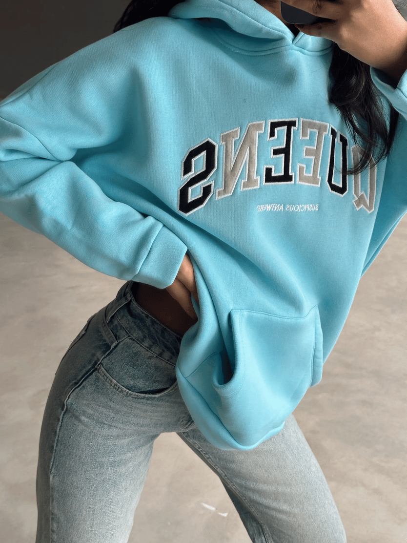 Queens Üç İplik Kapüşonlu Oversize Sweat Mavi - Mavi (MYD4528.SW.01_Mavi)