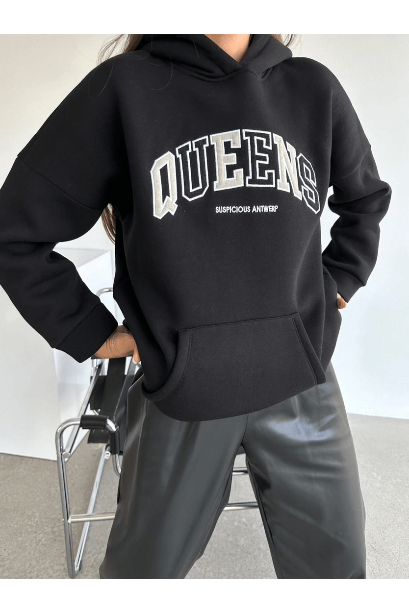 Queens Üç İplik Kapüşonlu Oversize Sweat Siyah - Siyah (MYD4528.SW.01_Siyah)