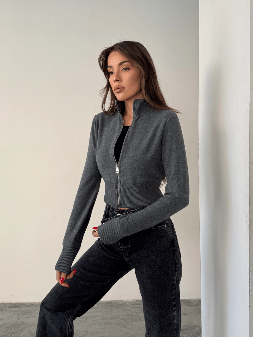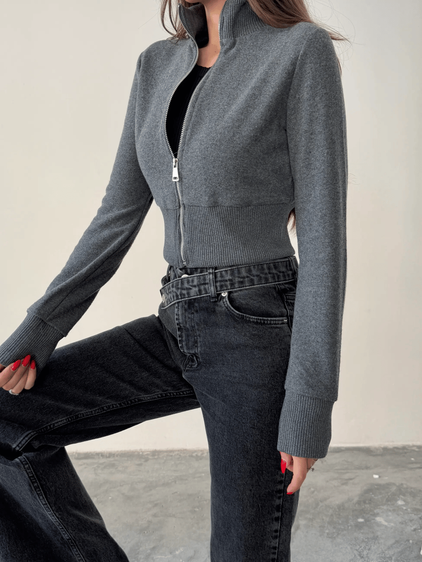 Ribanalı Balıkçı Triko Hırka - Gri (MD4243_Gri)