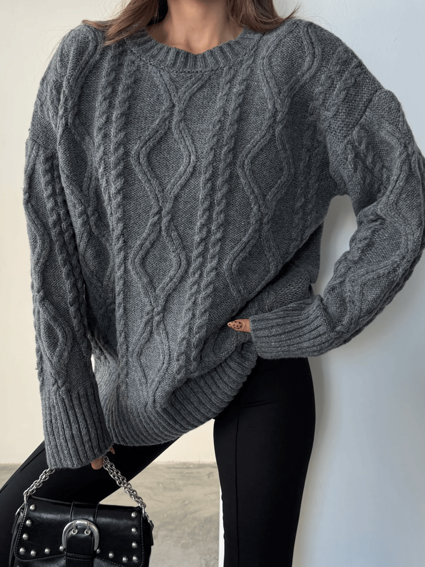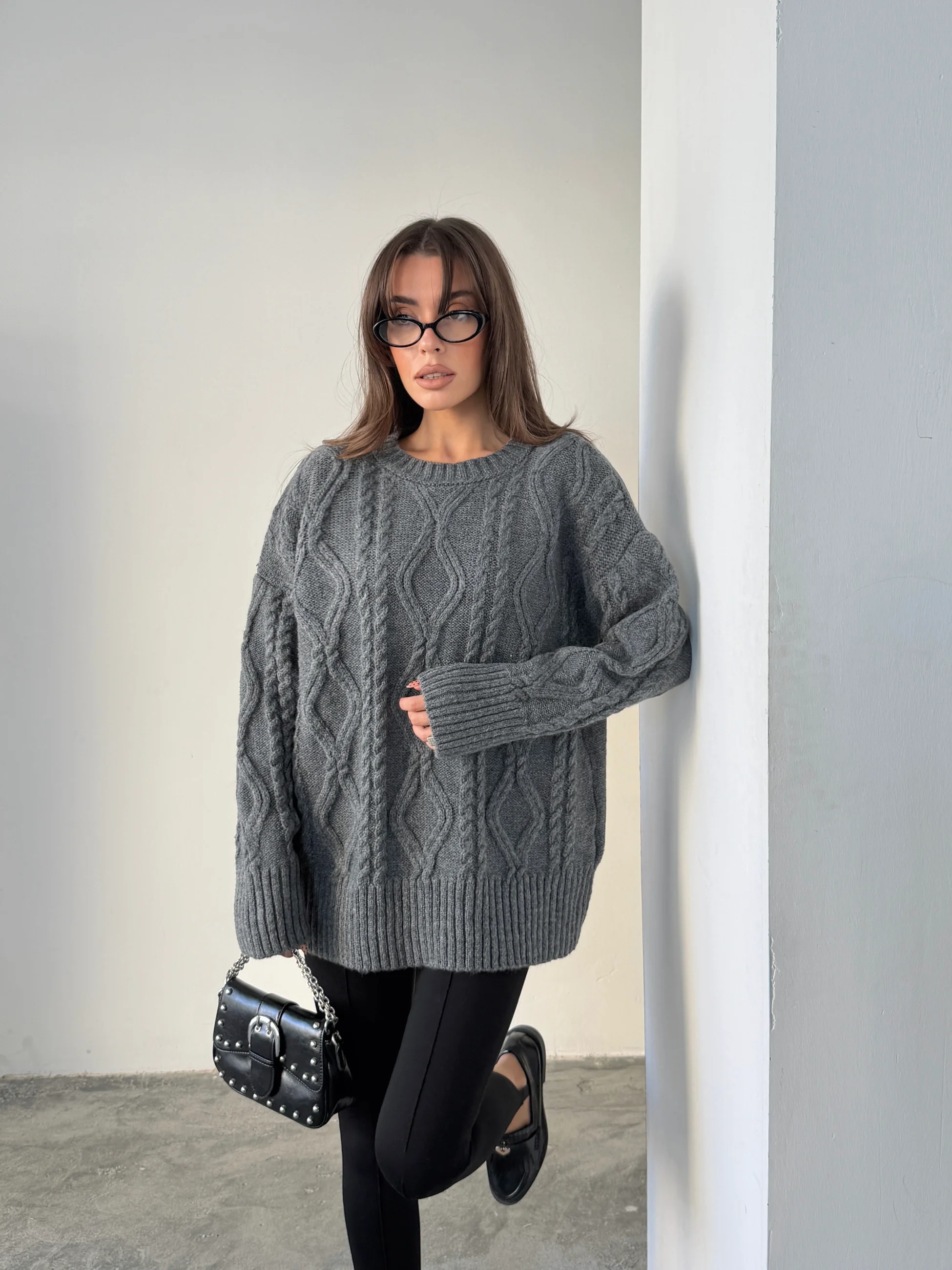 Saç Örgü Desenli Yıkamalı Triko - Antrasit (MYD8113_Antrasit)
