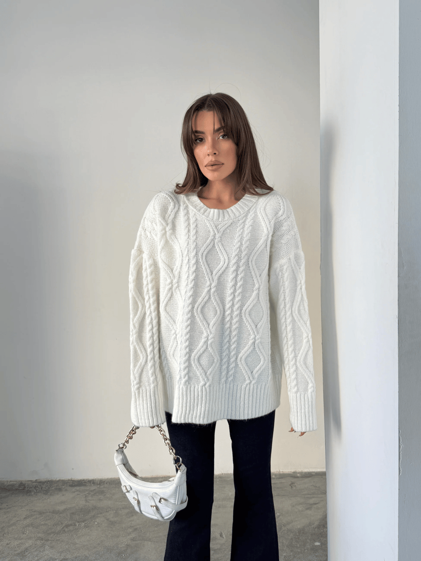 Saç Örgü Desenli Yıkamalı Triko - Ekru (MYD8113_Ekru)