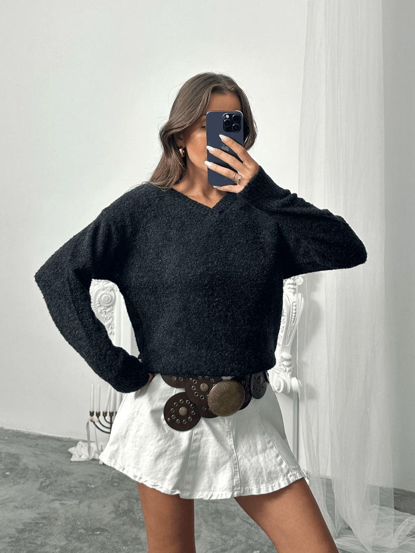 Şardonlu V Yaka Kazak - Antrasit (MD4062_Antrasit)