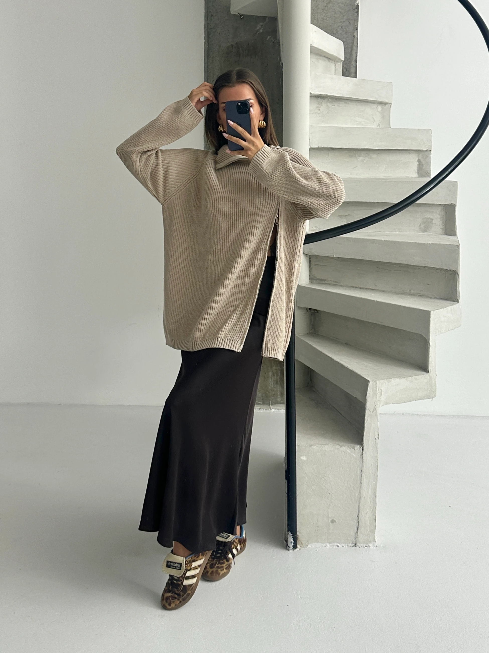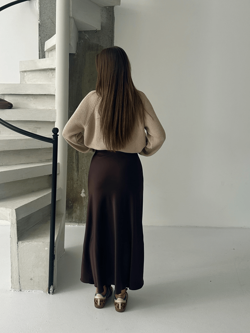 Saten Maxi Boy Etek - Acı kahve (MD4034_Acı kahve)