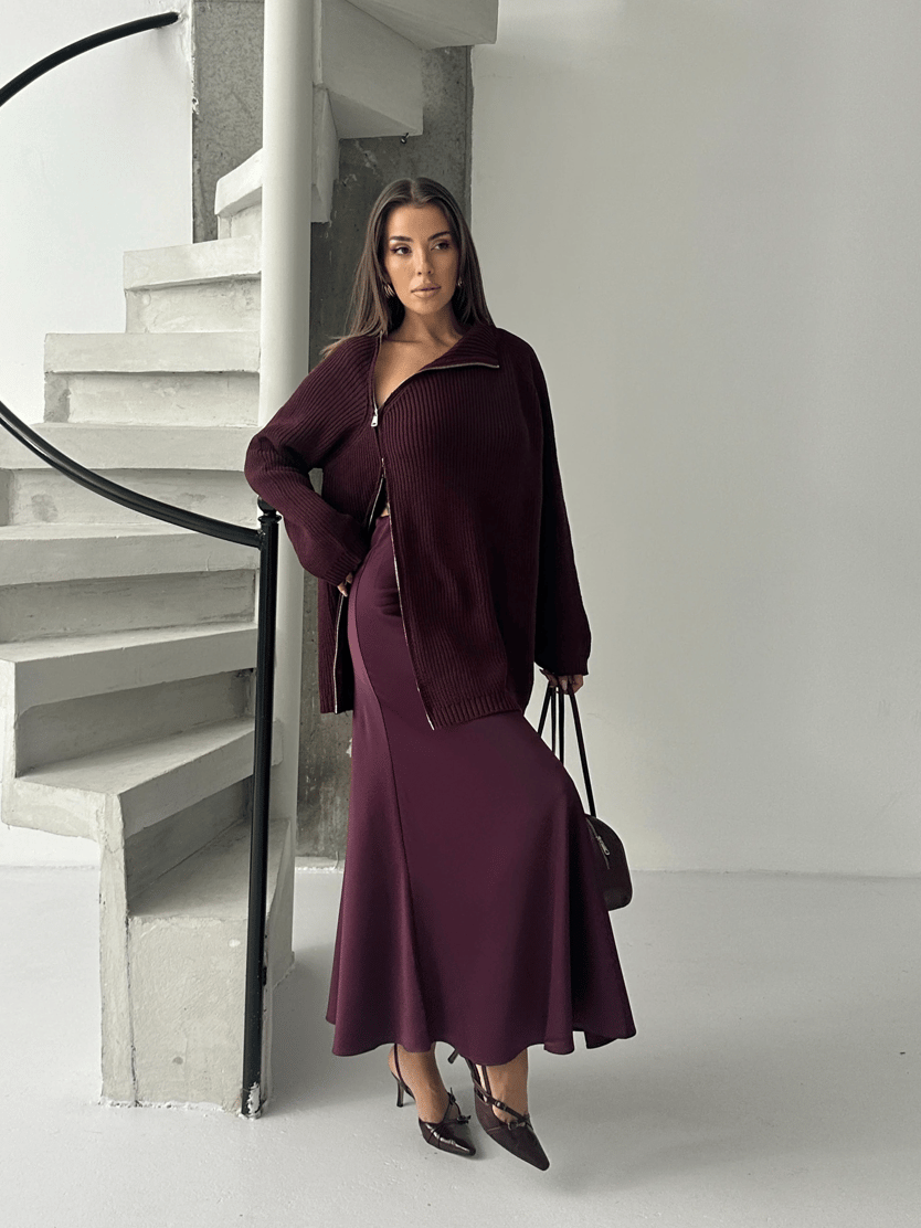 Saten Maxi Boy Etek - Mürdüm (MD4034_Mürdüm)