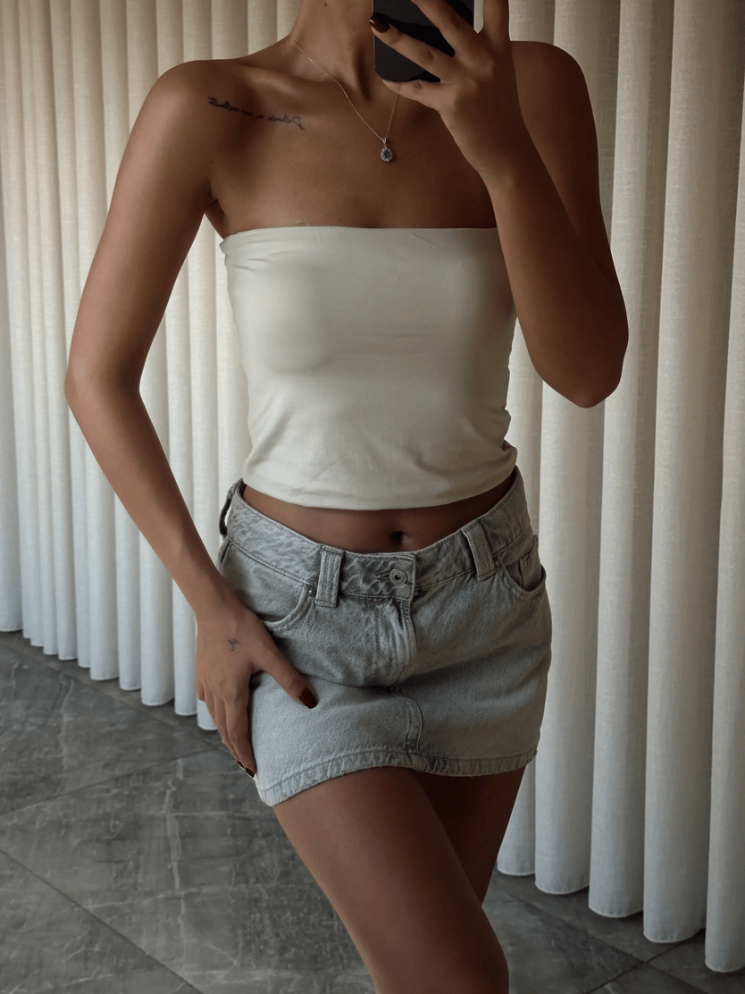 Scuba Straplez Crop - Taş (MD3962_Taş)