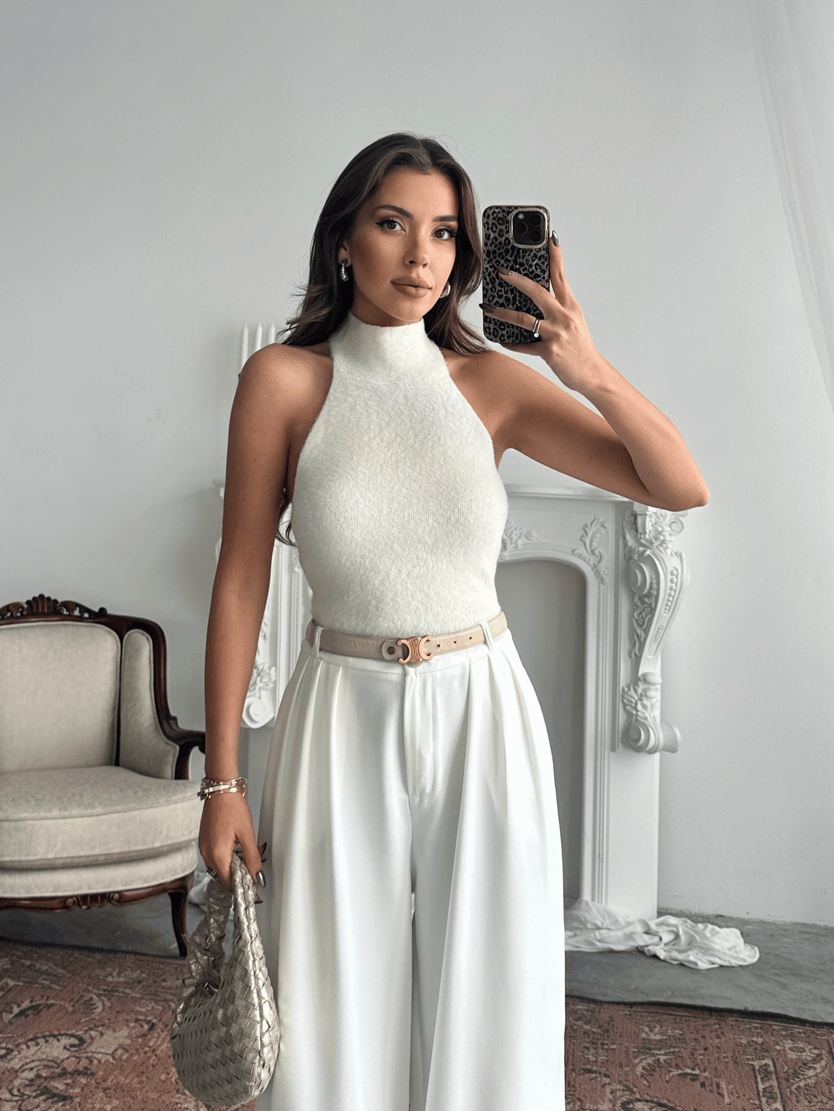 Sıfır Kol Balıkçı Yumoş Bluz - Ekru (MD4105_Ekru)