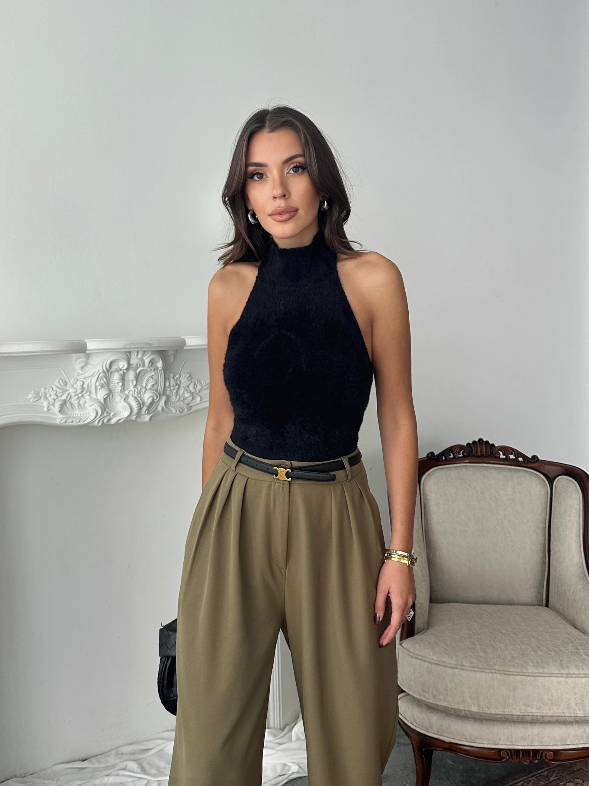 Sıfır Kol Balıkçı Yumoş Bluz - Siyah (MD4105_Siyah)