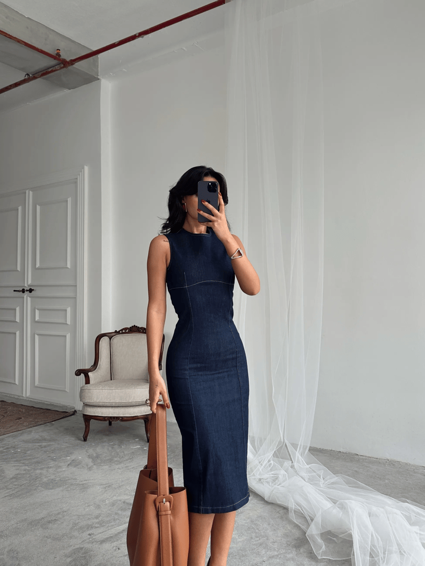 Sıfır Kol Denim Elbise - Lacivert (MD3690_Lacivert)