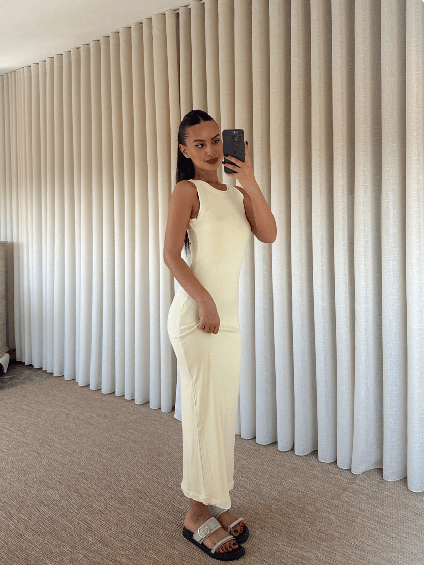 Sıfır Kol Şerit Detay Elbise - Sarı (MD3867_Sarı)