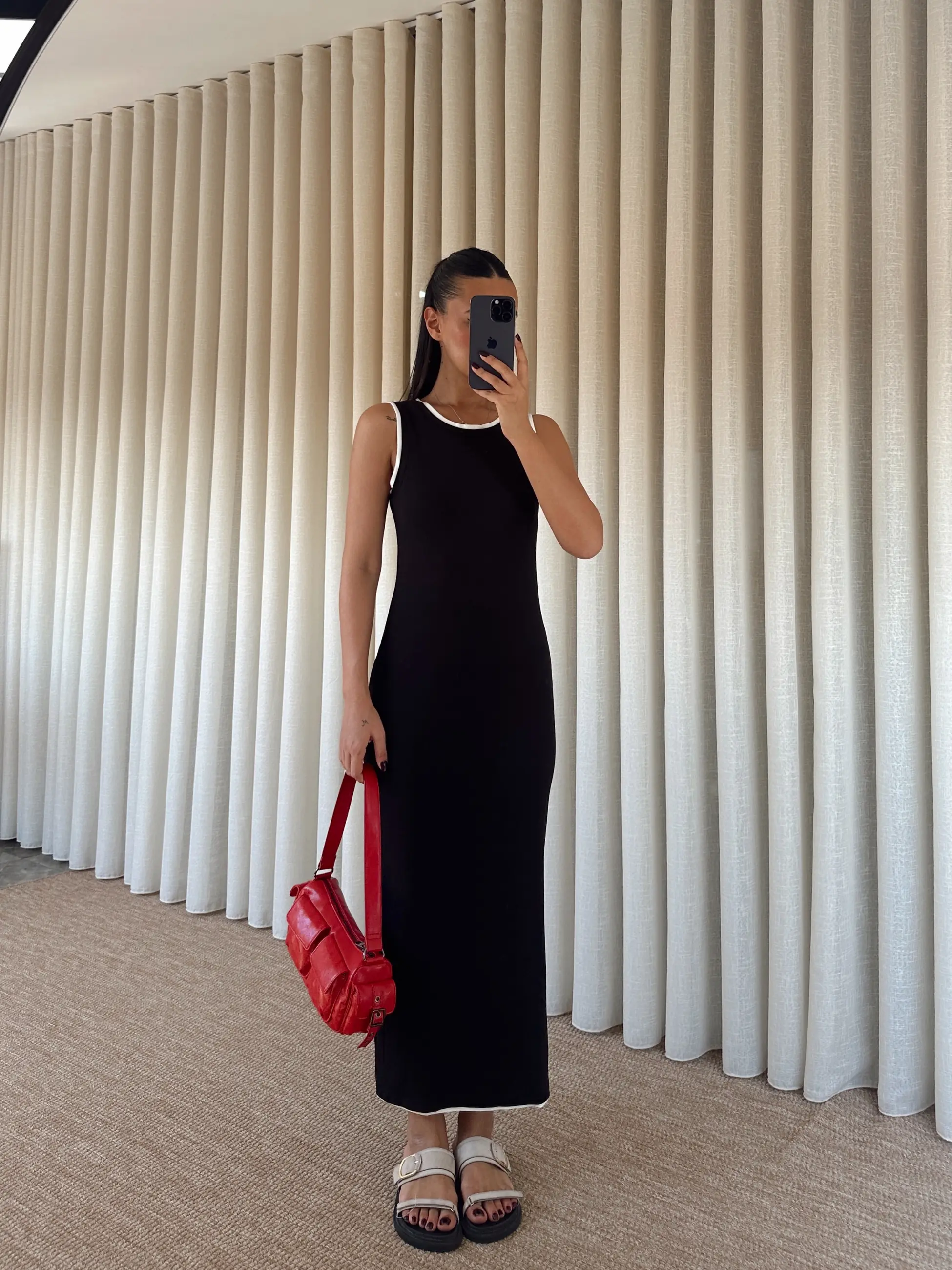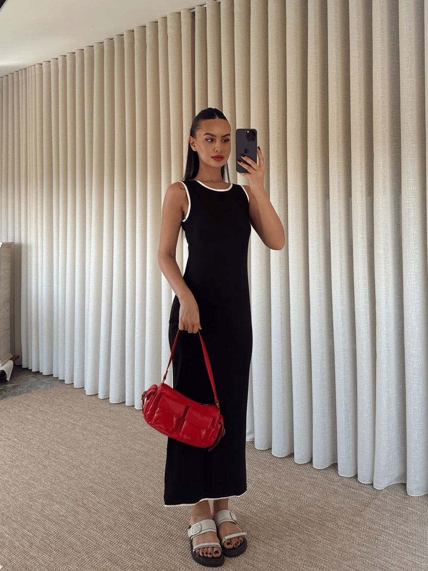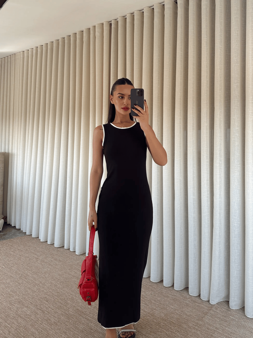 Sıfır Kol Şerit Detay Elbise - Siyah (MD3867_Siyah)