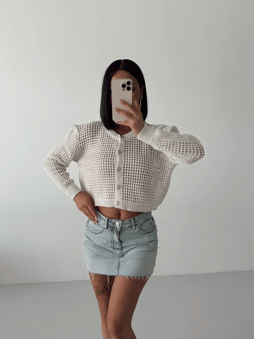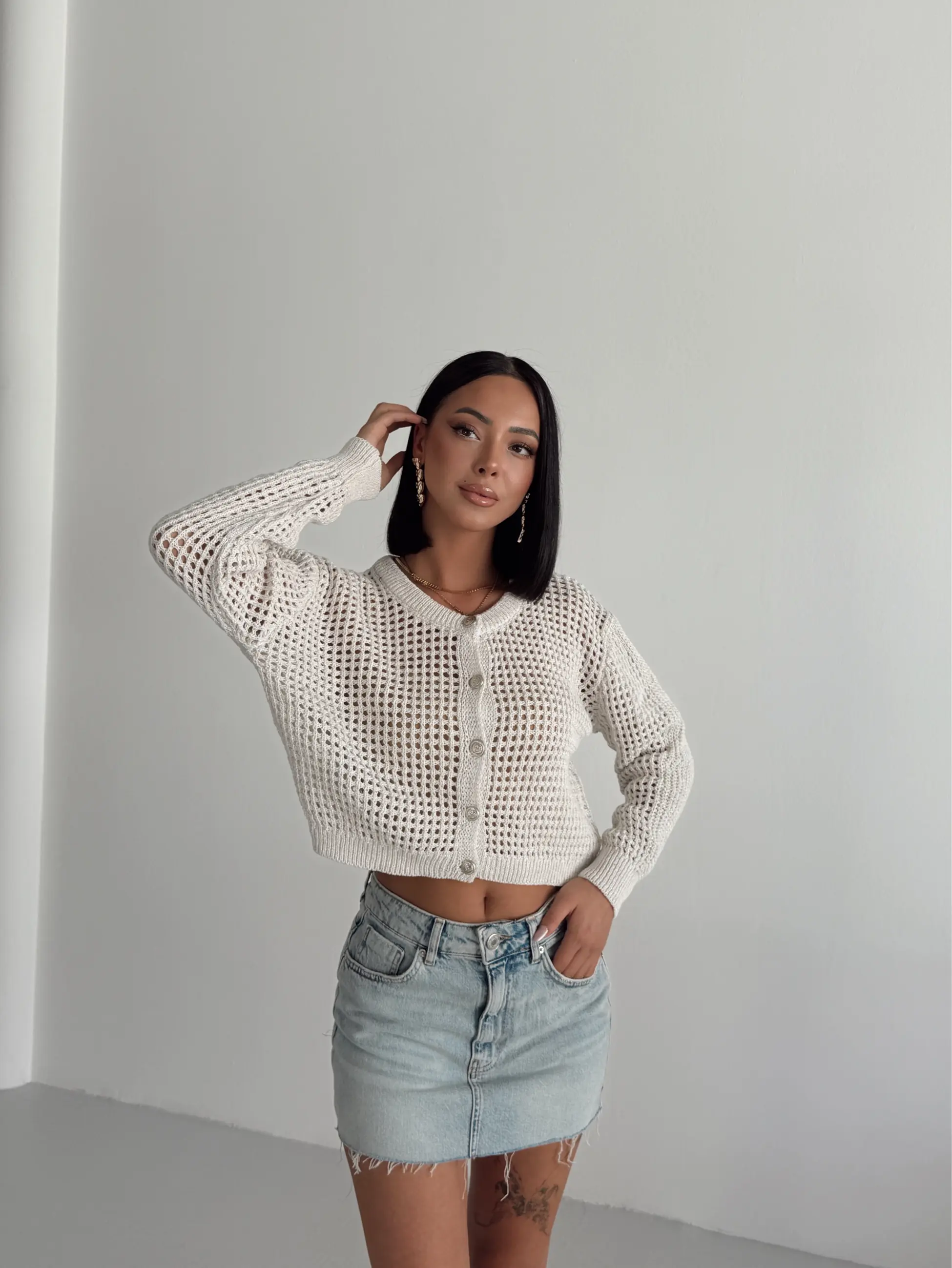 Simli Crop Hırka - Krem (MD4014_Krem)