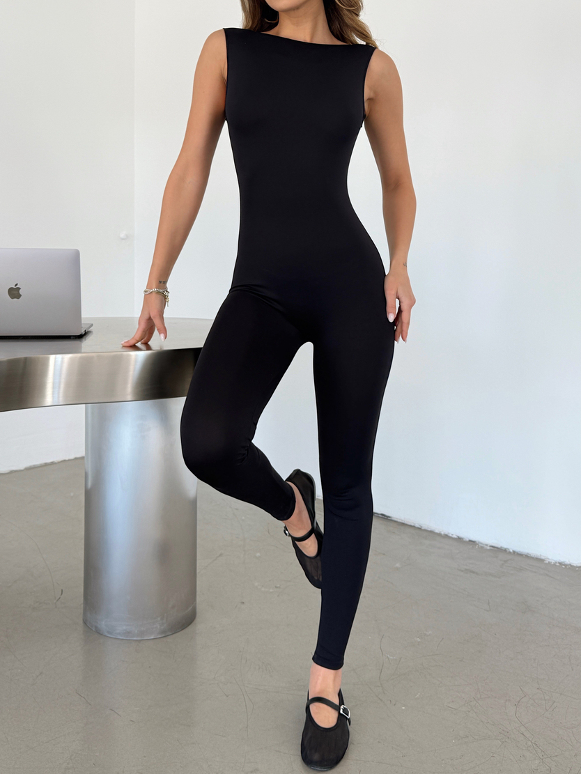 Sırt Detaylı Tayt Tulum - Siyah (MD4506_Siyah)