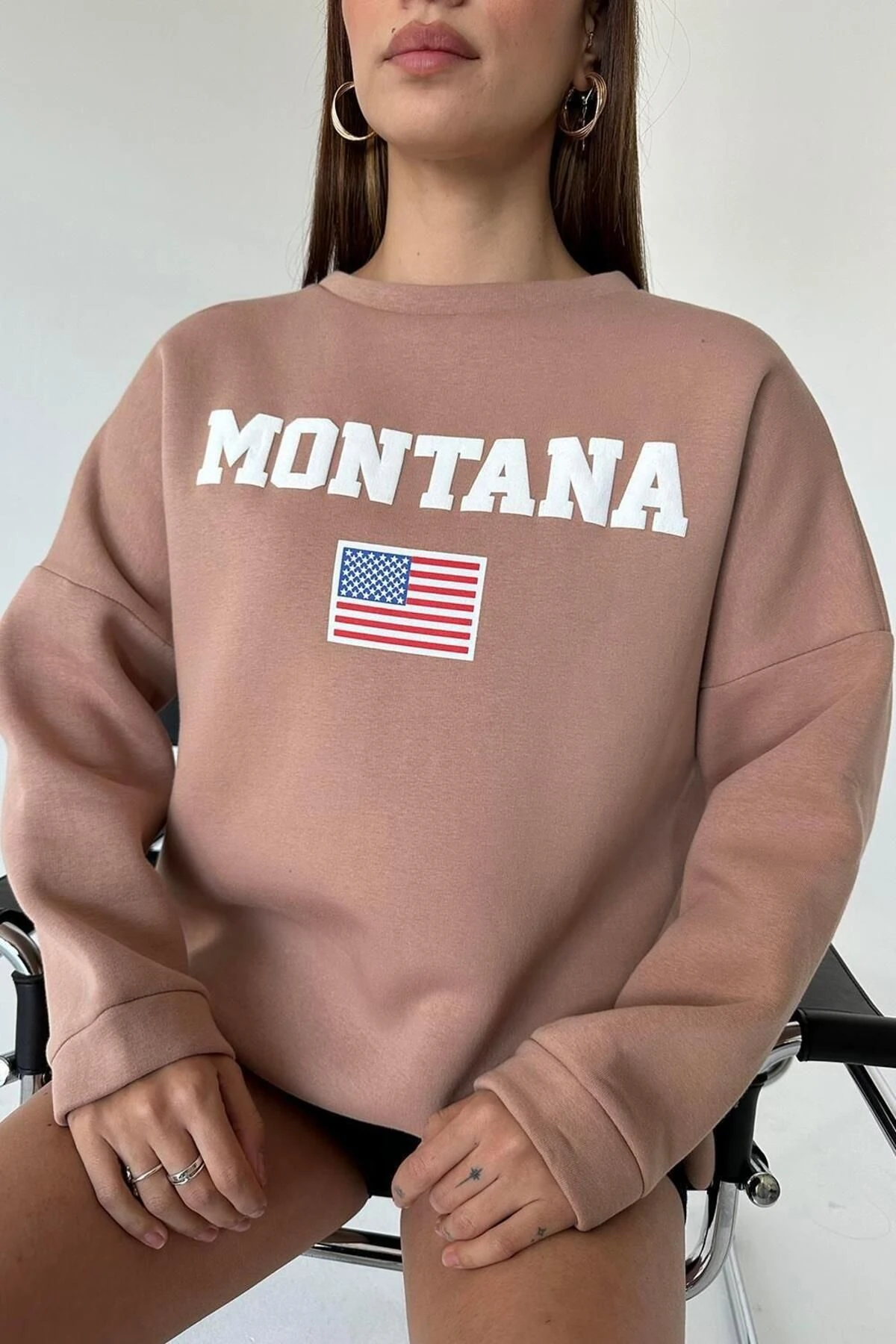 State Baskı Üç İplik Şardonlu Sweat Vizon - Vizon (MYD7279.SW.01_Vizon)