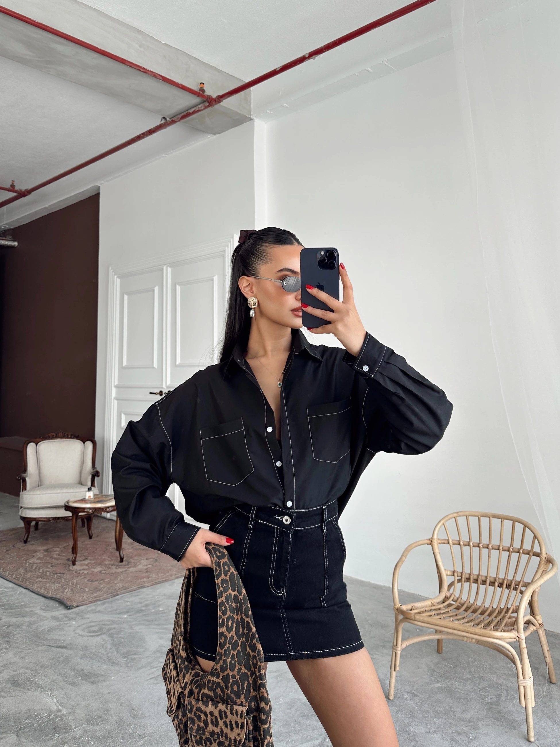 Süs Dikiş Detay Gömlek - Siyah (MYD7442_Siyah)