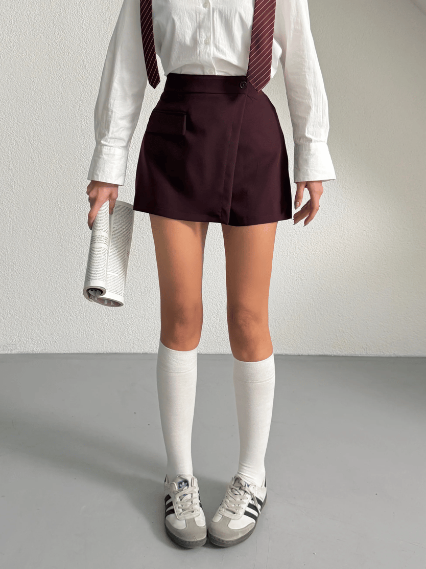 Tek Kapak Cepli Mini Etek - Siyah Tek Kapak Cepli Mini Etek - Kahve