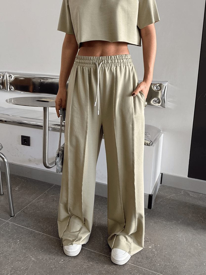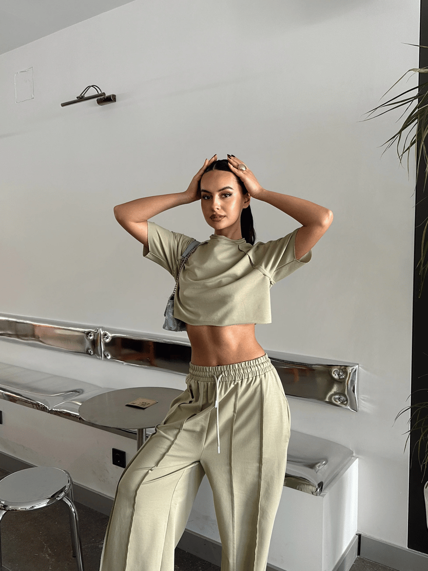 Ters Dikiş Detay Crop Takım - Haki Yeşil (MYD4614_Haki Yeşil)
