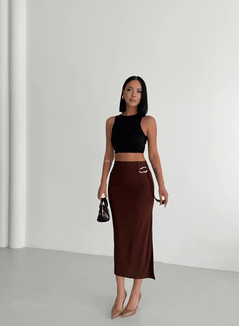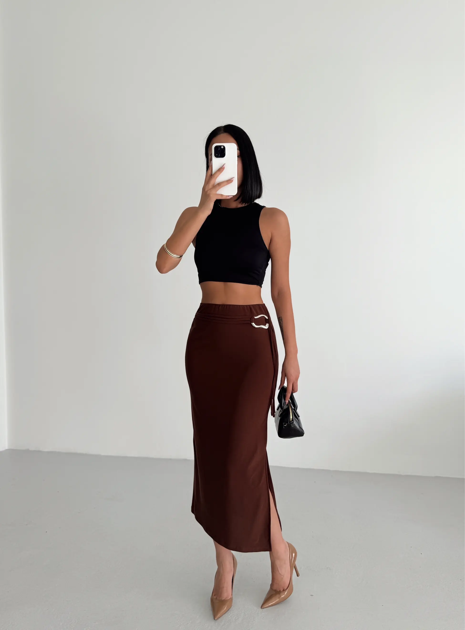 Tokalı Midi Etek - Kahve (MD3985_Kahve)