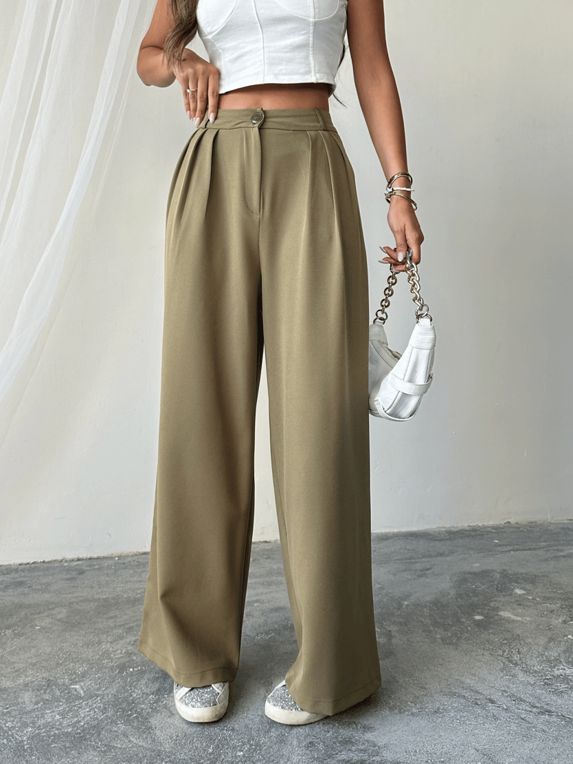 Üç Pile Palazzo Pantolon - Haki (MYD4133_Haki)