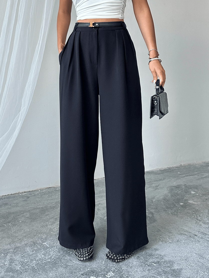 Üç Pile Palazzo Pantolon - Siyah (MYD4133_Siyah)