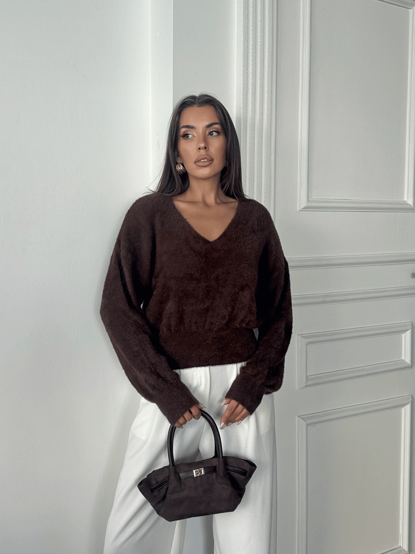 V Yaka Yumoş Kazak - Kahve (MD4040_Kahve)