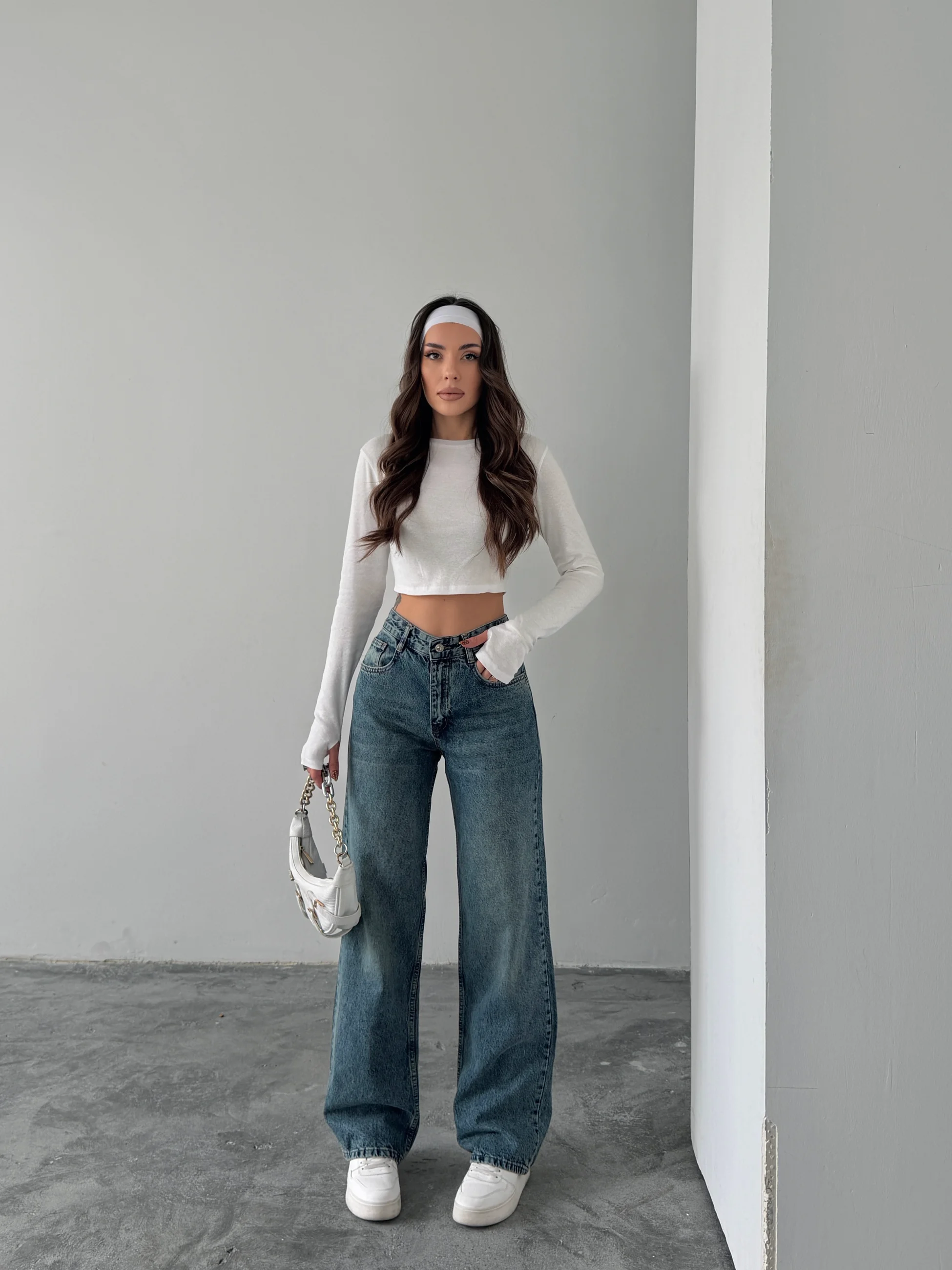 Vintage Wide Leg Jean Pantolon - Mavi (MD4279_Mavi)