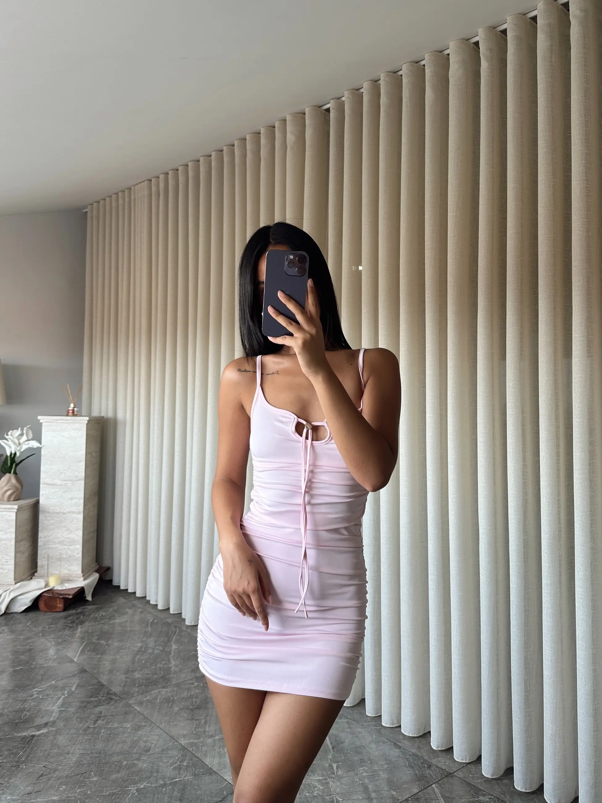 Yan Drape Mini Elbise - Pembe (MD3988_Pembe)