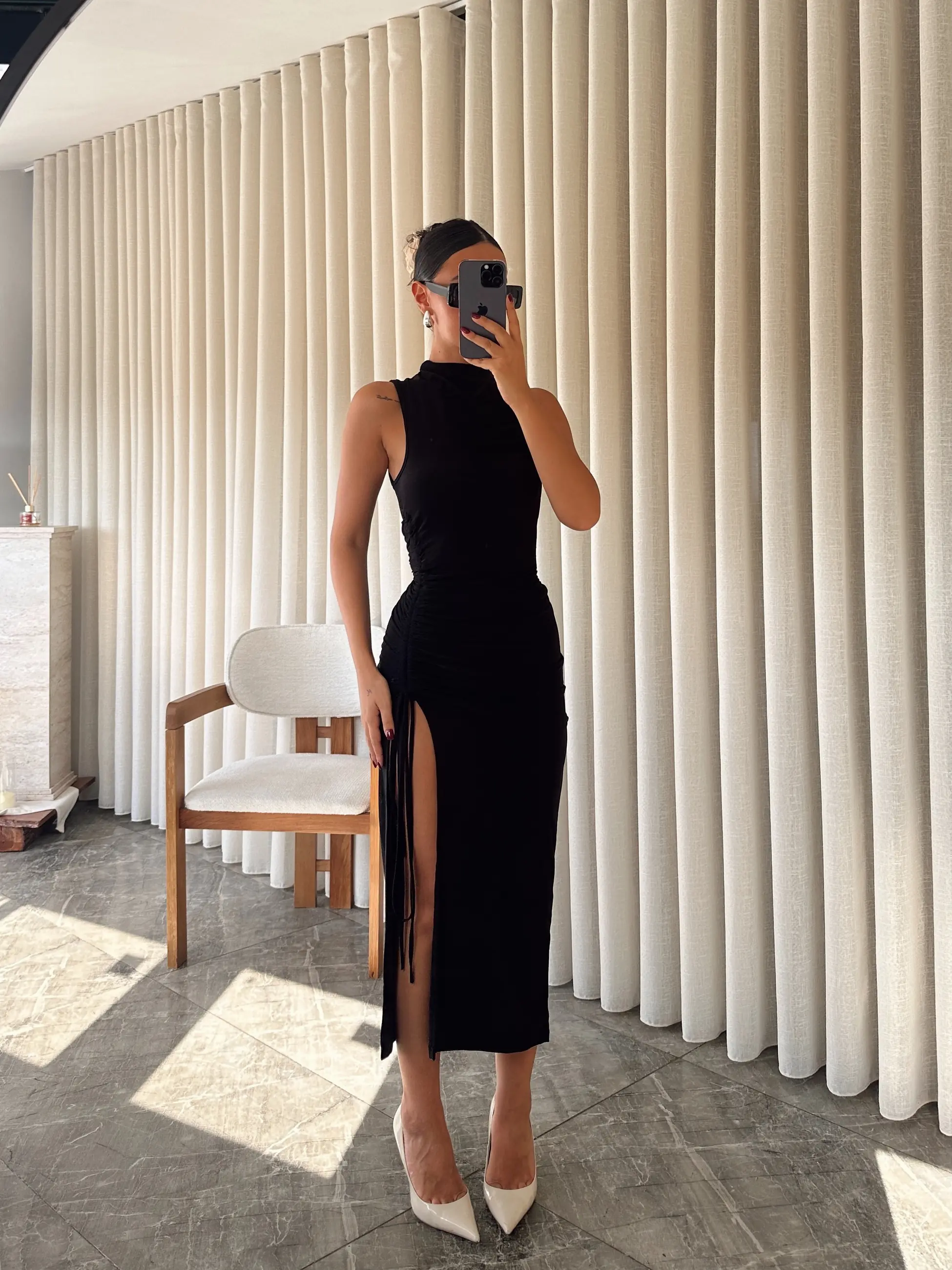 Yan Yırtmaç Sıfır Kol Elbise - Siyah (MYD2563_Siyah)