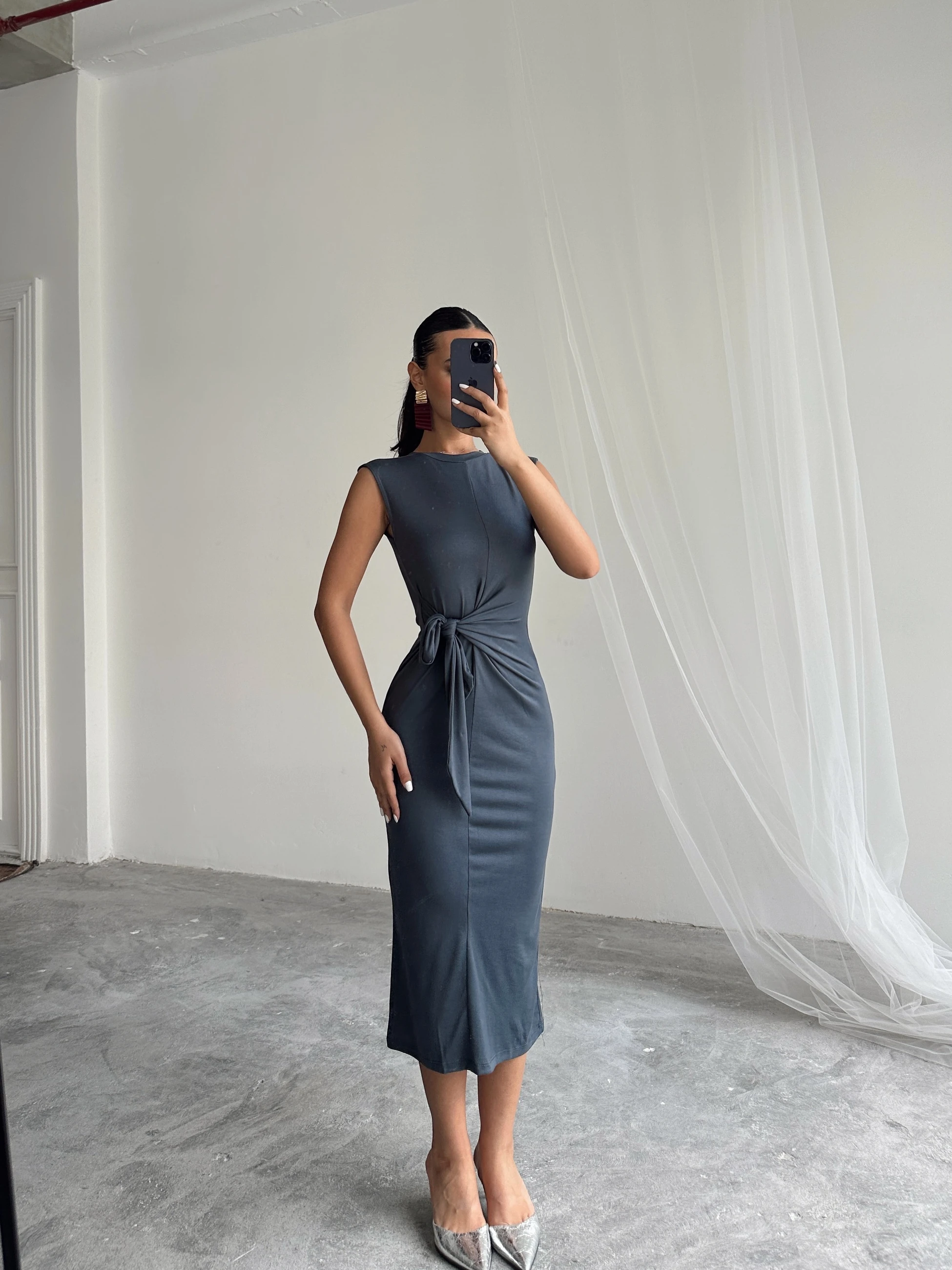 Yandan Bağlamalı Elbise - Antrasit (MD3712_Antrasit)